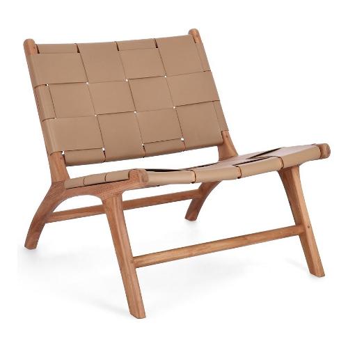 Legno teak, finitura con vernice a base d'acqua. Seduta e schienale rivestiti in vera pelle (pieno fiore)