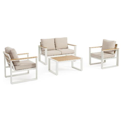 Set da esterno alluminio, polywood, spunpoly LEANDRO 4 posti Bianco e Beige 0663882