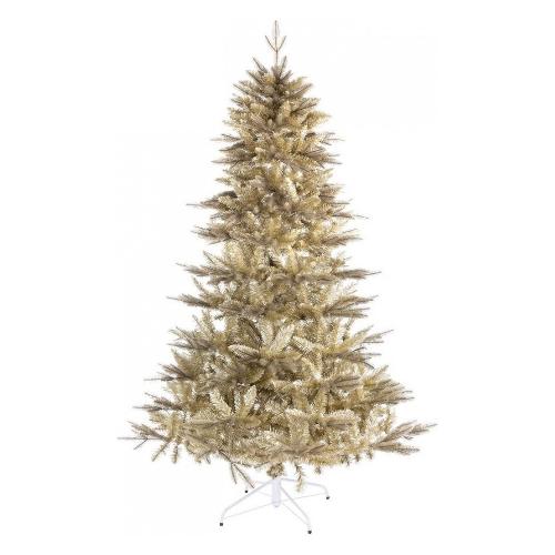 Albero con aghi in materiale pe stampato ad iniezione color oro e pvc oro, struttura e base in metallo, corone in metallo con apertura facilitata ad ombrello