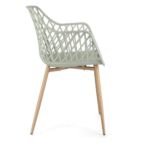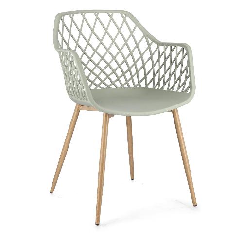 Gambe in acciaio verniciate effetto legno naturale. Seduta in plastica (pp)