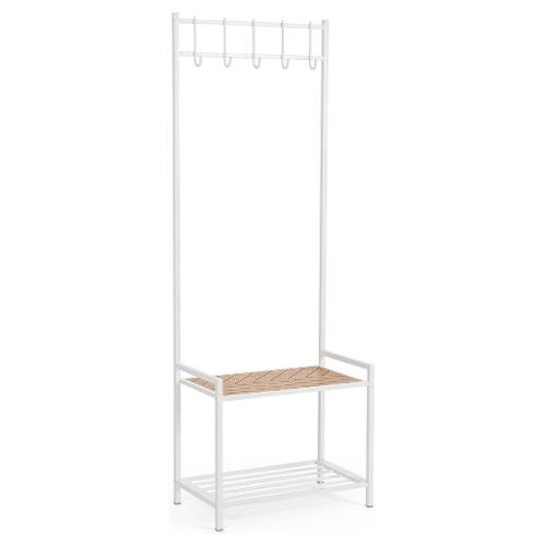 Struttura in acciaio verniciato a polvere epossidica e ripiano in MDF. Dotato di 5 ganci