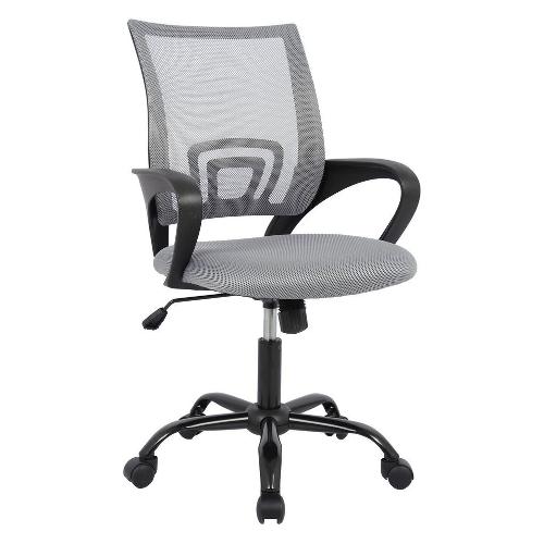 Base in acciaio verniciato Ø 68 cm. Ruote in nylon. Seduta in compensato, imbottita in schiuma poliuretanica (densità 25kg/m3) e rivestita in tessuto a rete Poliestere 100%. Schienale in plastica (pp) rivestito in tessuto a rete Poliestere 100%. Braccioli in plastica (pp). Regolazione dell'altezza con pistone a gas