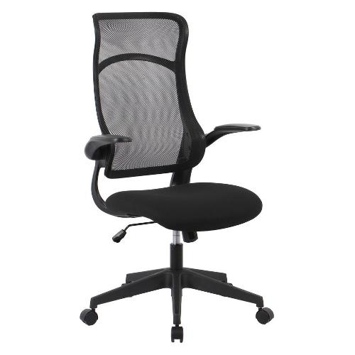 Base in nylon Ø 68 cm. Ruote in nylon. Seduta in compensato, imbottita in schiuma poliuretanica (densità 25kg/m3) e rivestita in tessuto a rete Poliestere 100%. Schienale in plastica (pp) rivestito in tessuto a rete Poliestere 100% con supporto lombare. Braccioli regolabili in plastica (pp). Regolazione dell'altezza con pistone a gas