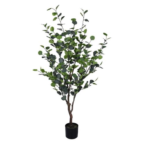 Foglie in tessuto di poliestere, tronco in materiale naturale, metallo, vaso in plastica, contenuto vaso in cemento. Ø75x150h