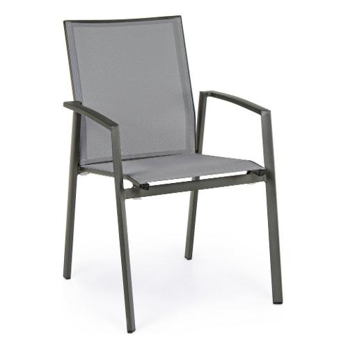 Struttura in alluminio, verniciato a polvere (Poliestere). Seduta e schienale rivestiti in Textilene phifer 1x1