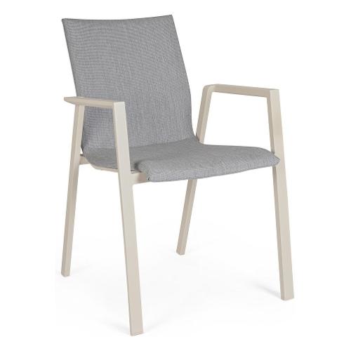 Struttura in alluminio verniciata a polvere (Poliestere). Rivestimento con tessuto idrorepellente misto (70% Textilene, 30% Olefin). Imbottitura per esterno fast dry foam