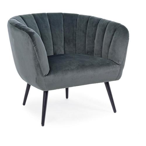 Struttura in legno compensato, gambe in acciaio verniciato a polvere epossidica. Rivestimento in Poliestere effetto velluto. Densità imbottitura seduta 28kg/m3 schienale 20kg/m3. Non sfoderabile