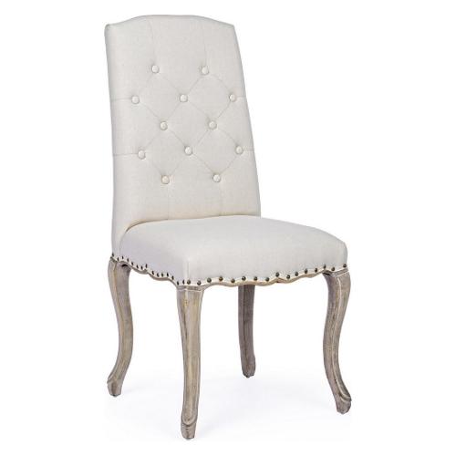 Struttura in Rubberwood. Seduta e schienale rivestite in tessuto (40% Poliestere, 30% Cotone e 30% lino)