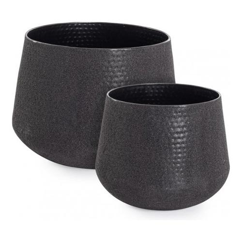 Set vasi tondi per piante 2 pz metallo KENAR Nero 0183219