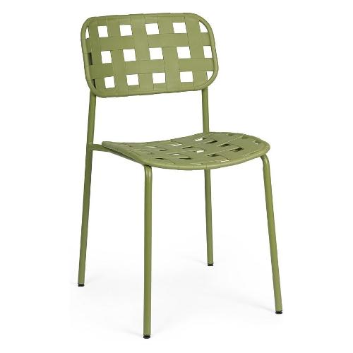 Struttura in acciaio (trattato per esterno tramite fosfatazione) e verniciato a polvere (Poliestere). Seduta e schienale in Polipropilene, resistente ai raggi uv