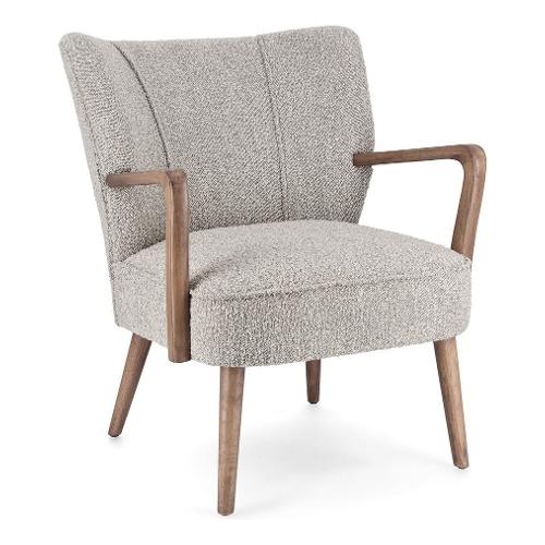 Struttura in legno di pino e compensato. Gambe e braccioli in Rubberwood. Rivestimento in Poliestere effetto bouclé. Densità imbottitura in schiuma poliuretanica 24 kg/m3. Non sfoderabile