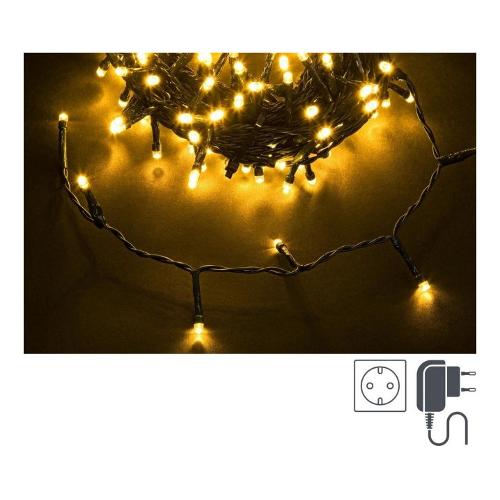 Catena 180led, luce classic, dimensione led 5mm non sostituibile. Filo verde, lunghezza totale filo 11,95mt, lunghezza cavo alimentazione 3mt, lunghezza filo luci 8,95mt. Dotato di presa schuko. 8 giochi luce con memory. Per uso interno-esterno ip44. Con colour box. Con trasformatore 31v3.6w.