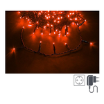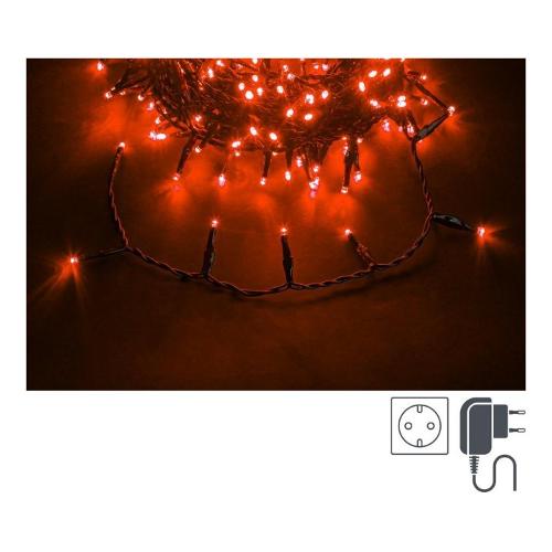 Catena 300led, luce rossa, dimensione led 5mm non sostituibile. Filo verde, lunghezza totale filo 17,95mt, lunghezza cavo alimentazione 3mt, lunghezza filo luci 14,95mt. Dotato di presa schuko. 8 giochi luce con memory. Per uso interno-esterno ip44. Con colour box. Con trasformatore 31v3.6w.