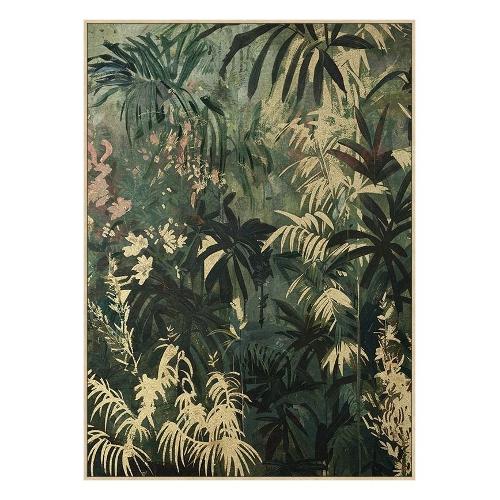 Stampa su tela con applicazioni fogli dorati. Telaio in legno
