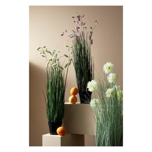 Fiore in poliestere, stelo in metallo e plastica, erba in pvc, vaso in plastica, contenuto vaso in cemento ø75x105h