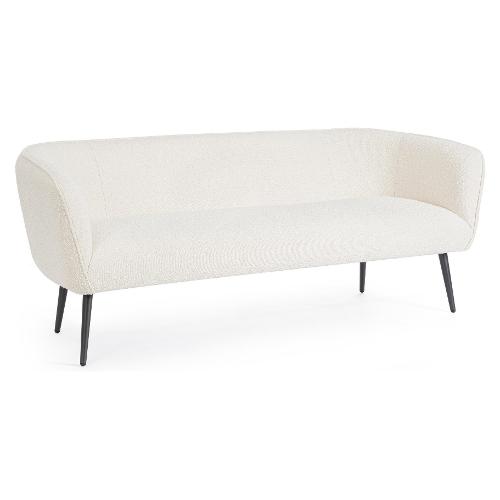 Struttura in legno compensato, gambe in acciaio verniciato a polvere epossidica. Rivestimento in Poliestere effetto bouclé. Densità imbottitura seduta 28kg/m3 schienale 20kg/m3. Non sfoderabile