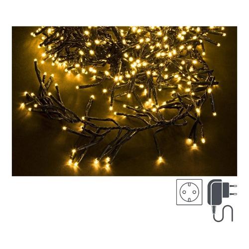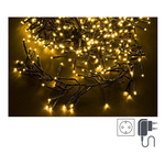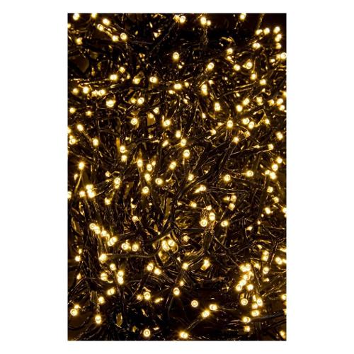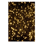 Catena cluster 768led, luce classic, dimensione led 3mm non sostituibili. Filo verde, lunghezza totale filo 7,5mt, lunghezza cavo alimentazione 3mt, lunghezza filo luci 4,5mt. Dotato di presa schuko. 8 giochi luce con memory. Per uso interno-esterno ip44. Con colour box. Con trasformatore 36v6w.