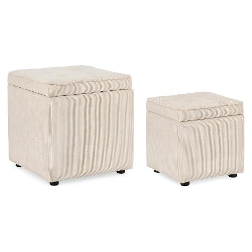 Struttura in legno di pino, piedini in plastica (pp), rivestimento esterno in Poliestere effetto velluto a coste, rivestimento interno in Poliestere. Con contenitore