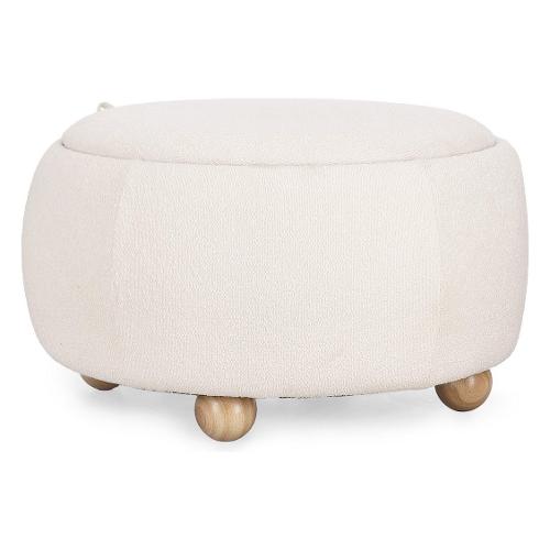 Struttura in MDF. Vassoio e piedini in legno di frassino. Rivestimento in Poliestere effetto bouclé. Densità imbottitura 50kg/m3