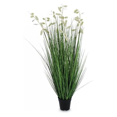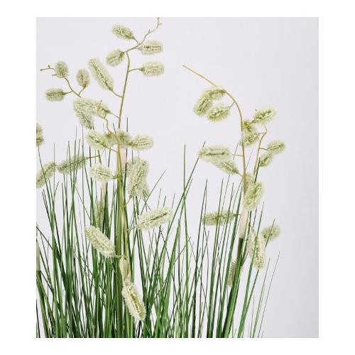 Fiore in polietilene, stelo in metallo e pvc, erba in pvc, vaso in plastica, contenuto vaso in cemento ø90x120h