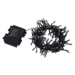Catena 48led, luce classic, dimensione led 5mm non sostituibili. Filo verde. Lunghezza totale filo 2,65mt, lunghezza cavo alimentazione 0,3mt, lunghezza filo luci 2,35mt, distanza led 5cm. 8 giochi luce con memory. Timer on-off 6/18 ore. Per uso interno-esterno ip44. Con colour box. Funziona a batteria 3xaa non incluse.