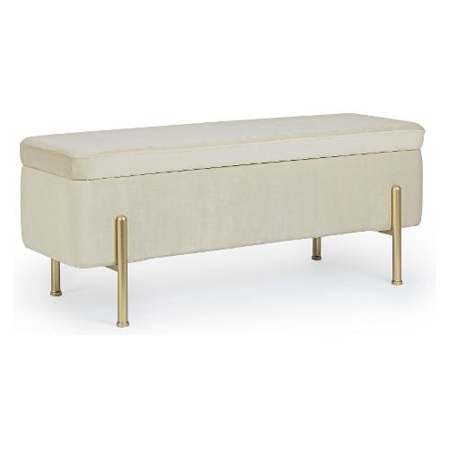 Struttura in MDF e compensato. Gambe in acciaio verniciato color oro. Rivestimento in Poliestere effetto velluto