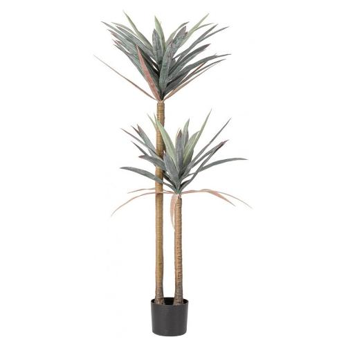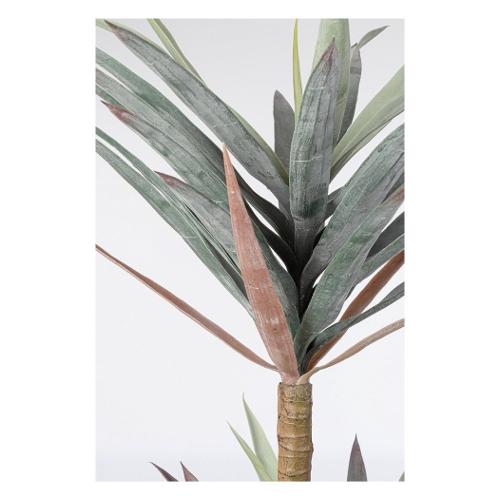 Foglie in poliuretano, tronco in plastica, metallo, vaso in plastica, contenuto vaso in cemento. 75x60x128h