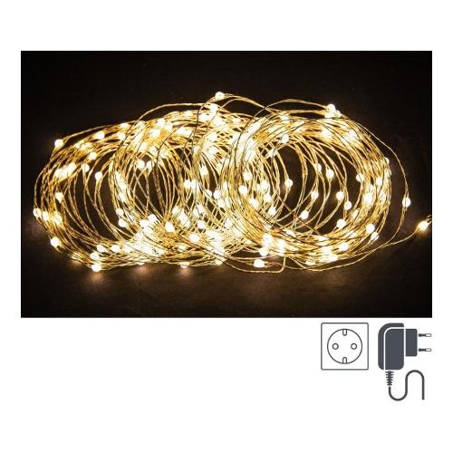 Catena 200 microled ad alta luminosita', luce classic, lunghezza totale filo 23mt, lunghezza cavo di alimentazione 0,3m, lunghezza filo luci 20mt, distanza led 10cm. Dotato di presa schuko. Per uso interno-esterno ip44. Con trasformatore 6v/6w