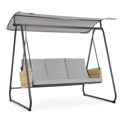 Dondolo acciaio, polyrattan, pvc EASY 3 posti Naturale e Grigio 0790229