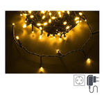 Catena 1500led, luce classic, dimensione led 5mm non sostituibile. Filo verde, lunghezza totale filo 78mt, lunghezza cavo alimentazione 3mt, lunghezza filo luci 75mt, distanza led 5cm. Dotato di presa schuko. 8 giochi luce con memory. Per uso interno-esterno ip44. Con colour box. Con trasformatore 31v 7.2w.