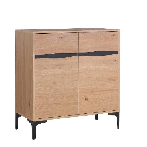 Struttura in pb e MDF con decoro in acciaio. Vani porta comprensivi di mensola. Gambe in acciaio verniciate a polvere epossidica