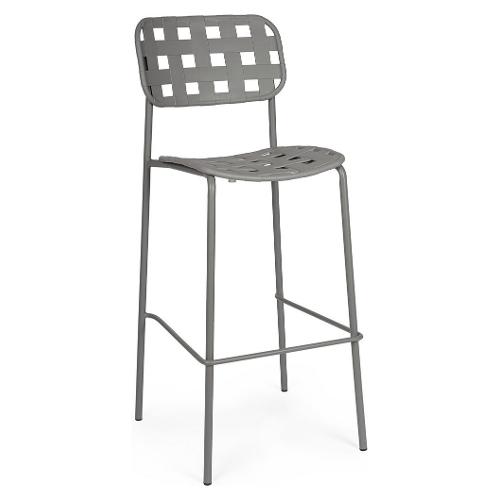 Struttura in acciaio (trattato per esterno tramite fosfatazione) e verniciato a polvere (Poliestere). Seduta e schienale in Polipropilene, resistente ai raggi uv