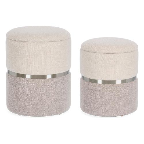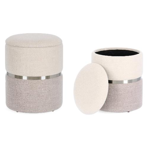 Struttura in MDF e compensato. Rivestimento in Poliestere. Densità imbottitura 30kg/m3. Anello decorativo in acciaio verniciato color argento