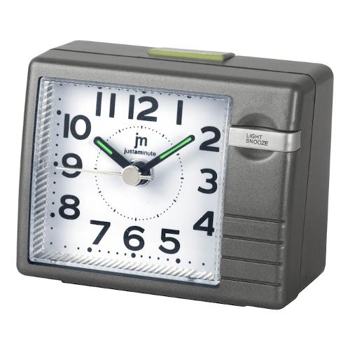 Sveglia al quarzo analogica con luce, snooze (ripetizione dopo 5 minuti) e suoneria bip-bip con crescendo. Movimento continuo silenzioso.