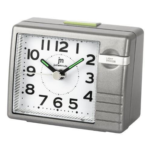 Sveglia al quarzo analogica con luce, snooze (ripetizione dopo 5 minuti) e suoneria bip-bip con crescendo. Movimento continuo silenzioso.