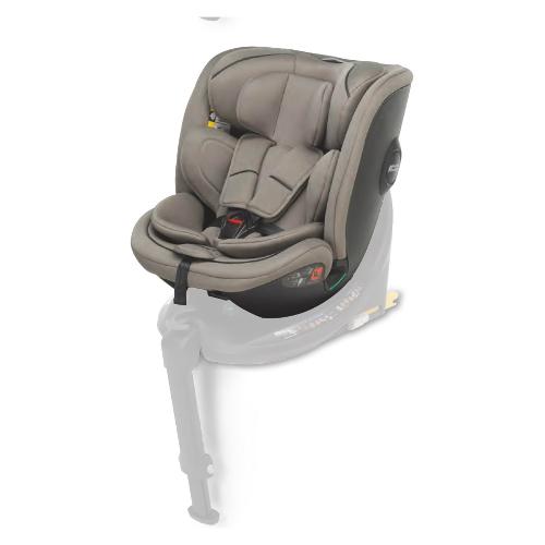 Seggiolino auto utilizzabile dalla nascita fino ai 12 anni (40-150 cm) da montare su base rotante disk i-size (non inclusa e acquistabile separatamente). Dotato di poggiatesta e cinture regolabili simultaneamente con unico movimento è dotato di tessuti e imbottiture extra comfort