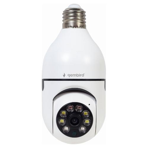 Telecamera wifi intelligente per interni da 1080p con microfono e altoparlante integrati. Installazione semplice e rapida in una presa di corrente standard E27