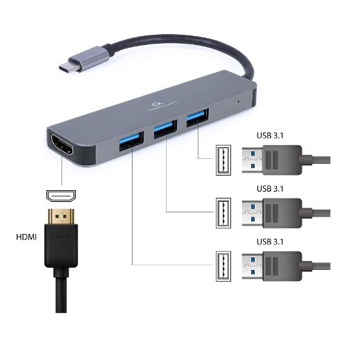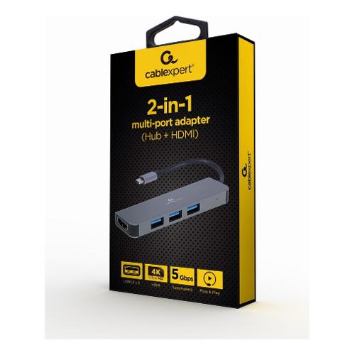 HUB 2 in 1 CABLEXPERT USB C Grey A CM COMBO2 01