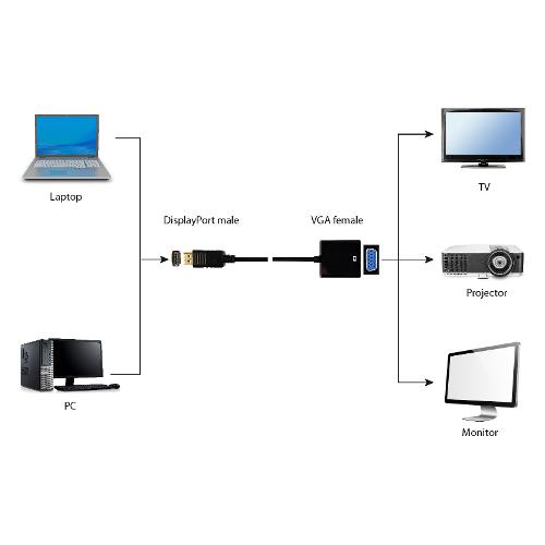 Ti consente di connettere un monitor VGA o beamer alla porta DisplayPort del tuo notebook