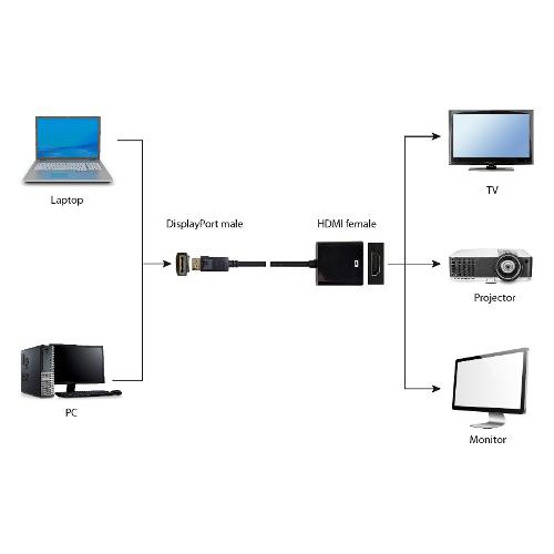 Consente la connessione di un display HDMI a una sorgente video DisplayPort