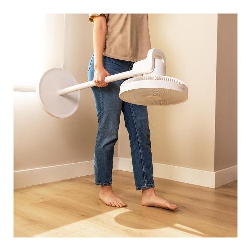 È un ventilatore 3 in 1, ovvero, oltre ad essere un ventilatore da terra, può essere utilizzato come ventilatore da terra a media altezza e come ventilatore da scrivania. Pertanto, lo stesso prodotto è utile per esigenze diverse. Inoltre, è pieghevole quindi permette di riporlo facilmente all'interno della propria base, potendo così risparmiare spazio. Dimentica cavi e grovigli grazie alla sua batteria agli ioni di litio da 2600 mAh, che ti permetterà di godere di una grande freschezza per ore nel modo più comodo.