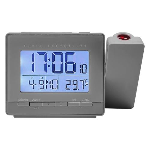 Sveglia digitale radiocontrollata (DCF) con possibilità di messa a punto manuale. Proiezione dell’orario ribaltabile di 180° e regolabile. Possibilità di regolare luminosità del display e della proiezione. Rilevazione della temperatura interna. Doppio allarme con snooze. Possibilità di visualizzare un secondo orario da impostare manualmente. Calendario (Giorno, Mese, Anno, Giorno della settimana.) Adattatore incluso.