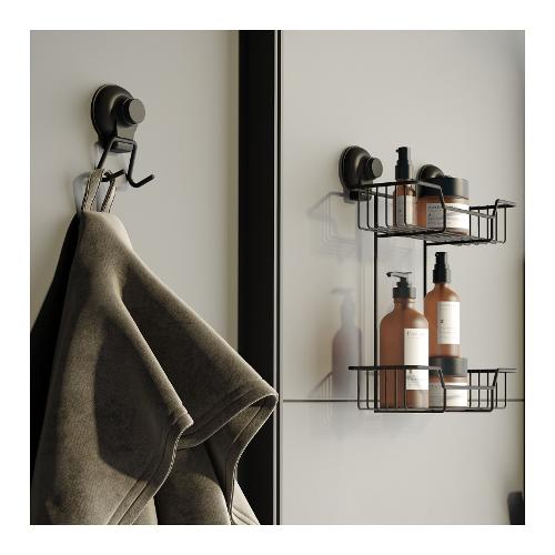 Porta oggetti box doccia 2 ripiani a ventosa (27,4x12,5x35,5cm) HOT Nero opaco HO19 14