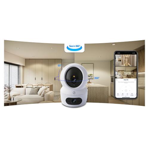 Vivi una visione interna senza pari con EZVIZ H7c Dual. Grazie a due potenti lenti che garantiscono una copertura completa dall'alto al basso, la telecamera offre una protezione completa dell'intera stanza come mai prima d'ora. Dotata di rilevamento del movimento umano, chiamata bidirezionale e visione giorno/notte cristallina, ti mantiene connesso alla tua casa da qualsiasi luogo e raddoppia il tuo senso di sicurezza con funzioni molto più flessibili.