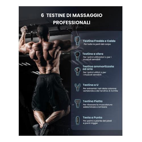 Un massaggiatore a percussione di alta qualità per professionisti o persone attive. Allenta lo stress, dissolvi le tensioni. Doppia funzionalità di calore e freddo. Collegati all'App Renpho Health tramite Bluetooth per un'esperienza di terapia a percussione personalizzata, con corsi video professionali per il recupero muscolare. Ha una durata della batteria di 3 ore e si ricarica tramite USB-C