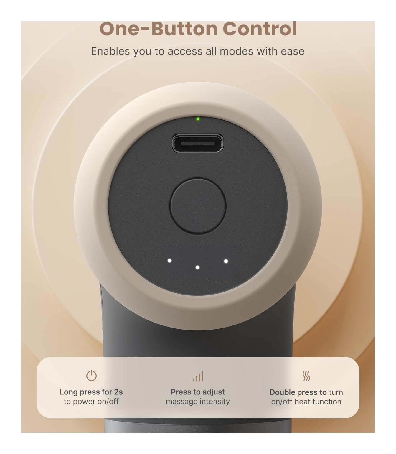 Dotata di testina in acciaio termoconduttore, la pistola per massaggio dei tessuti profondi si riscalda fino a 46°C in appena 1 minuto, riducendo efficacemente la tensione e il dolore muscolare.