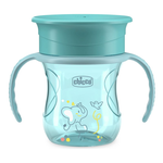 Tazza ergonomica e dotata di manici rimovibili, è progettata per i bambini di 12 mesi che stanno imparando a coordinare respirazione e deglutizione; permette di bere proprio come dal bordo di un bicchiere, in autonomia e senza rovesciare l'acqua. la membra in silicone 360° si attiva con le labbra, rilasciando il liquido quando il labbro del bambino preme contro il bordo. La membrana è trasparente, così il bambino può vedere il liquido avvicinarsi. può essere facilmente rimossa per trasformare la tazza in un vero bicchiere, da utilizzare con o senza manici. Le tazze chicco sono state sviluppate con la collaborazione di esperti logopedisti e pediatri, per guidare in modo semplice e naturale nel passaggio dall'allattamento al bere in autonomia
