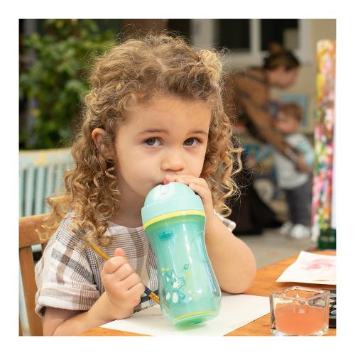 Tazza antigoccia facile da tenere in mano, è pensata per bambini dai 14 mesi che conducono una vita più attiva e hanno bisogno di idratarsi regolarmente; perfetta per bere in modo naturale anche quando si è in movimento. cannuccia in silicone resistente ai morsi, morbida e flessibile, dotata di una chiusura a scatto che la fa rientrare all'interno del coperchio per mantenerla pulita durante il trasporto. la leggera tazza a doppia parete aiuta a mantenere le bevande fresche più a lungo, senza creare condensa. Le tazze chicco sono state sviluppate con la collaborazione di esperti logopedisti e pediatri, per guidare in modo semplice e naturale nel passaggio dall'allattamento al bere in autonomia