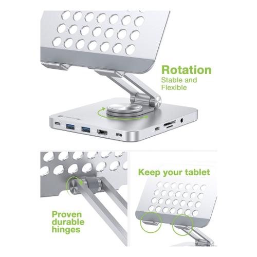 Permette di espandere più interfacce su telefono cellulare, tablet e altri dispositivi mobili con porta USB-C 3.2 Gen 1. Hub USB-C multifunzionale con ingresso USB-C e 8 uscite: 2 uscite USB-A 3.2 Gen1 5Gbps, una USB-C, una HDMI 4K@60Hz, una PD 100W, un lettore di SD/TF 3.0 e porta audio da 3,5 mm (microfono + auricolare).