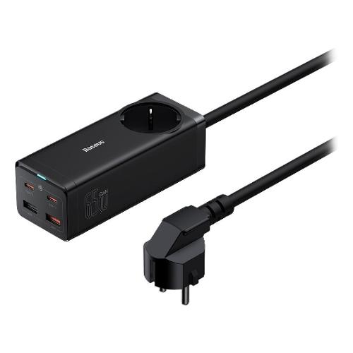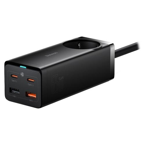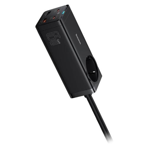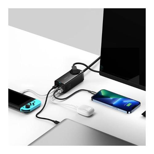 Migliora la tua configurazione di ricarica con la multipresa compatta Baseus da 65 W. 2 porte USB-C, 2 porte USB-A e 1 presa CA alimentano 5 dispositivi contemporaneamente.